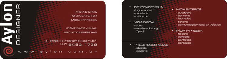 Eficaz em fornecer informações para a continuação de um contato pessoal e excelente apoio na busca de oportunidades e abertura de relacionamentos favoráveis, esta peça deve também causar boa impressão. Seu layout deve comunicar o perfil da instituição ou do profissional, por isso sua composição deve ser realizado em harmonia com a identidade visual.